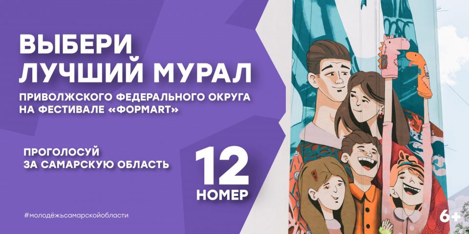 Самарская область приняла участие в пятом юбилейном сезоне Фестиваля уличного искусства ПФО «ФормART». В этом году регион представляет художник Дмитрий Горшков (псевдоним — Пирог) c работой «Игра теней». Мурал был реализован на фасаде жилого дома в Самаре на улице Советской Армии, 121. Финал Фестиваля «ФормART» — это народное голосование среди 14 регионов ПФО за лучшую работу. Проголосовать за самарский мурал можно позвонив по номеру 8 (800) 301-50-23. Код региона — 12, звонок бесплатный.
