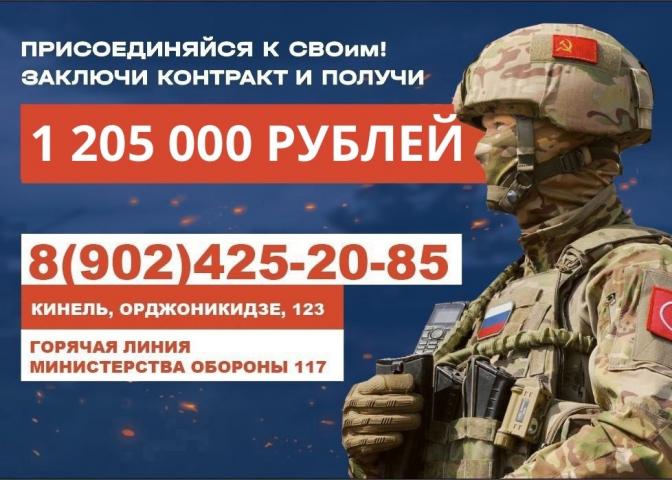 По вопросам поступления на военную службу по контракту в Вооружённые силы Российской Федерации обращаться в военный комиссариат г. Кинель и Кинельского района по адресу: г. Кинель, ул. Орджоникидзе, 123.