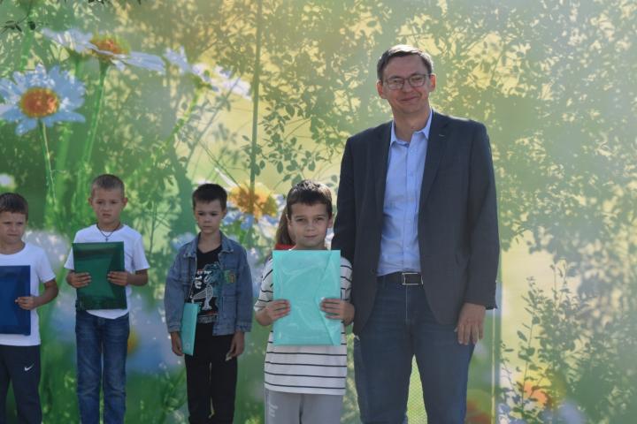 Торжественная часть мероприятия началась с приветственных слов исполняющего обязанности Главы городского округа Кинель Алексея Николаевича Лужнова и теплого поздравления в адрес жителей Елшнягов. По традиции торжественно на импровизированной сцене отметили 28 будущих первоклассников и вручили им школьные наборы.