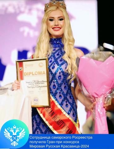 Работать в Росреестре - престижно и перспективно. Здесь можно реализоваться не только в профессиональном плане, но и в личностном. Так член Молодежного совета самарского Росреестра, сотрудник отдела правового обеспечения Виктория Симдянкина получила Гран-при конкурса Мировая Русская Красавица Самара 2024.
