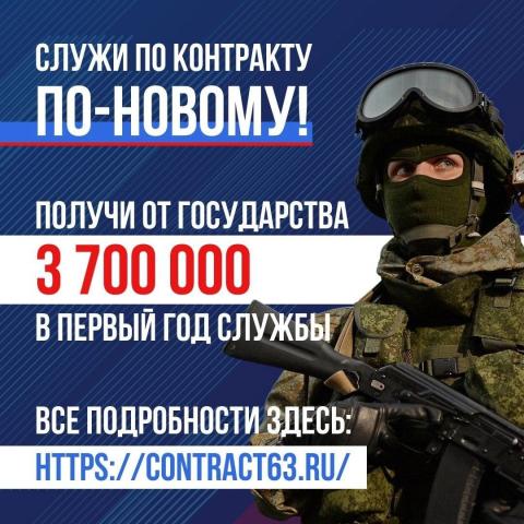 Заключи контракт и получи от 3,7 млн рублей за первый год службы (с учетом выплат Правительства Самарской области и Минобороны России).