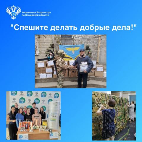 Волонтеры самарского Росреестра постоянно помогают своим землякам, выполняющим воинский долг на СВО. Сотрудники ведомства регулярно отправляют гуманитарные грузы в зону боевых действий, оперативно оказывая необходимую поддержку нашим бойцам.