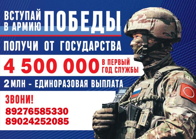 Единоразовая региональная выплата тем, кто идёт защищать Родину, составляет 2 млн рублей. Выплаты за первый год работы - 4,5 млн рублей.
