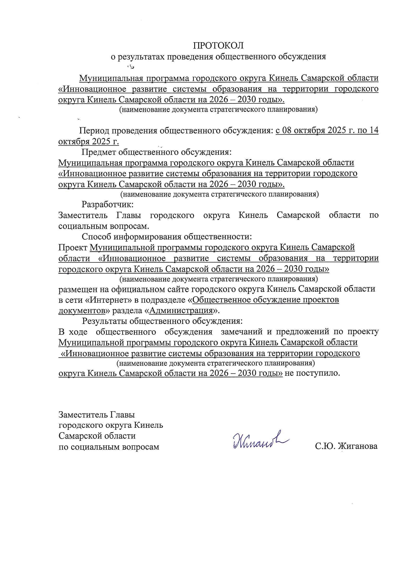 Об утверждении муниципальной программы городского округа Кинель Самарской области «Инновационное развитие системы образования на территории городского округа Кинель Самарской области на 2026 – 2030 годы» |