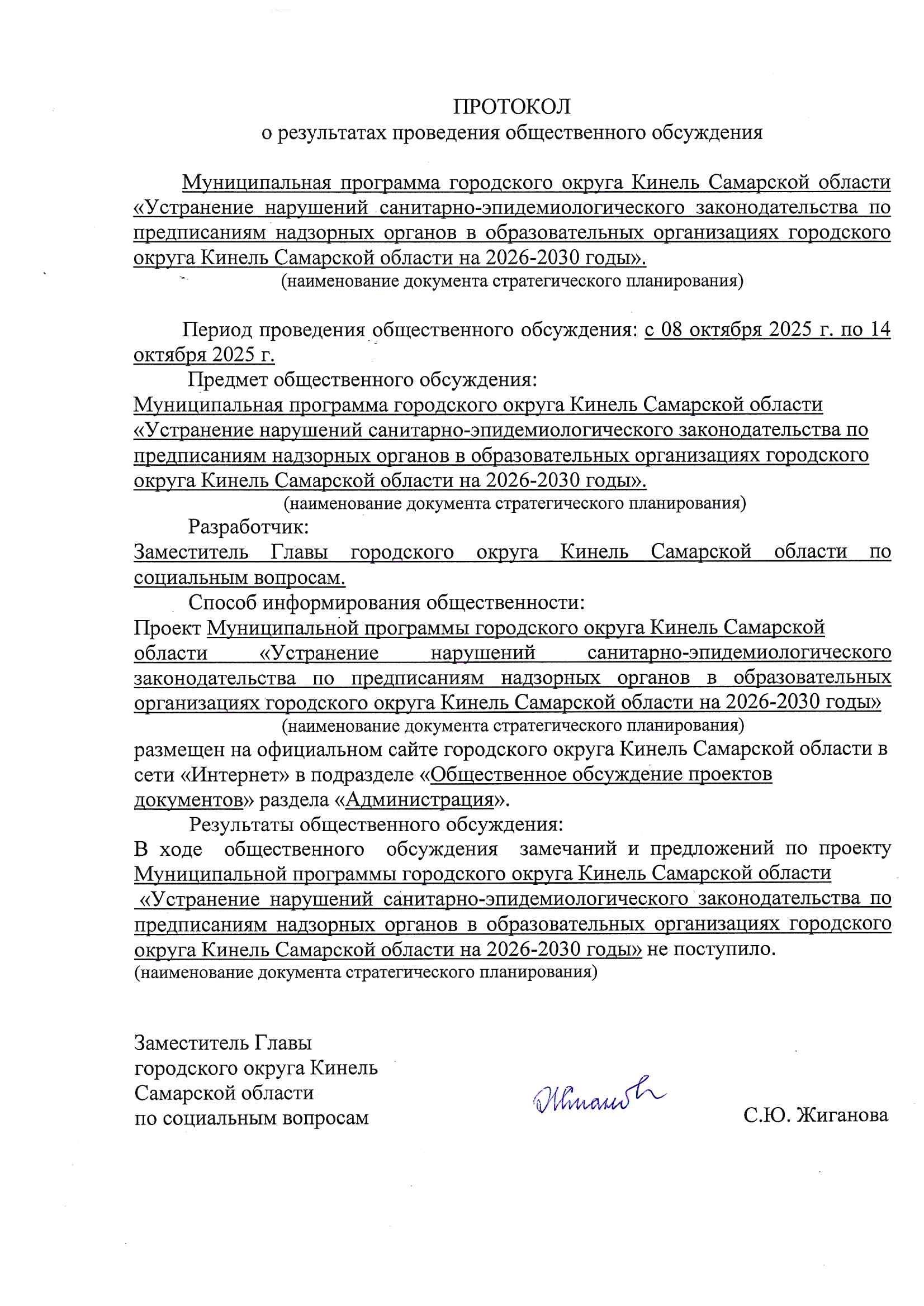 Об утверждении муниципальной программы городского округа Кинель Самарской области «Устранение нарушений санитарно-эпидемиологического законодательства по предписаниям надзорных органов в образовательных организациях городского округа Кинель Самарской области на 2026-2030 годы» |