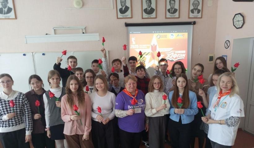 В школе № 7 в 7 «Б» классе прошла патриотическая акция «Красный тюльпан», приуроченная ко Дню памяти о россиянах, выполнявших свой служебный долг за пределами Отечества.