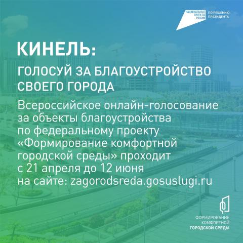 Стартовало всероссийское онлайн-голосование за объекты благоустройства по федеральному проекту «Формирование комфортной городской среды». Голосование пройдет до 12 июня на сайте: https://zagorodsreda.gosuslugi.ru/?utm_source=cur63&utm_medium=gpub