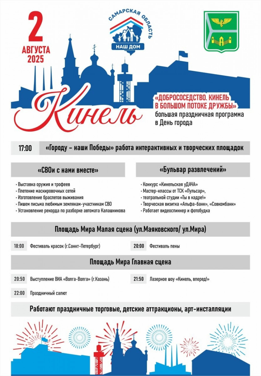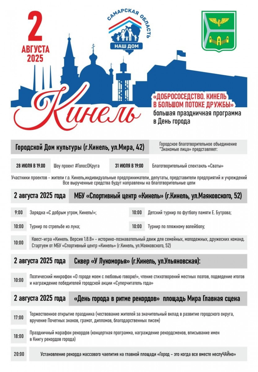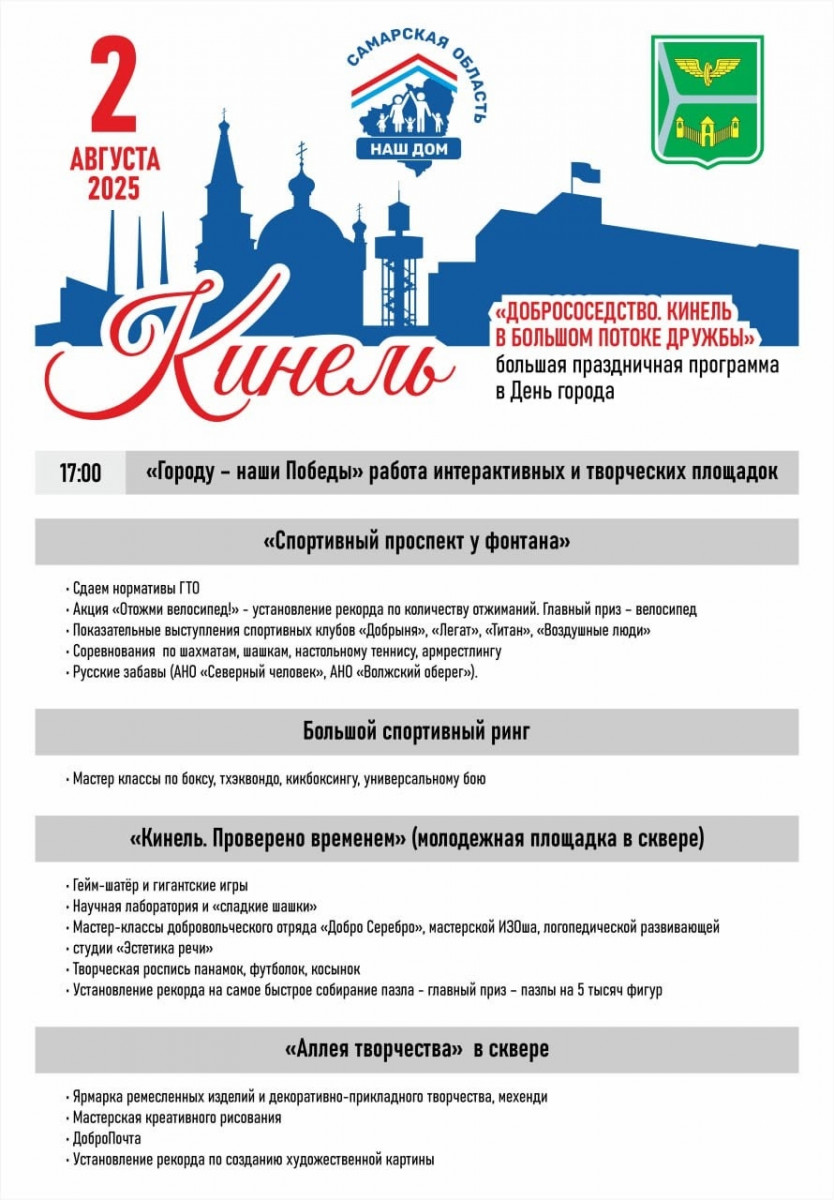Новости → 2 августа Кинель отметит День города! Приглашаем принять активное участие в мероприятиях