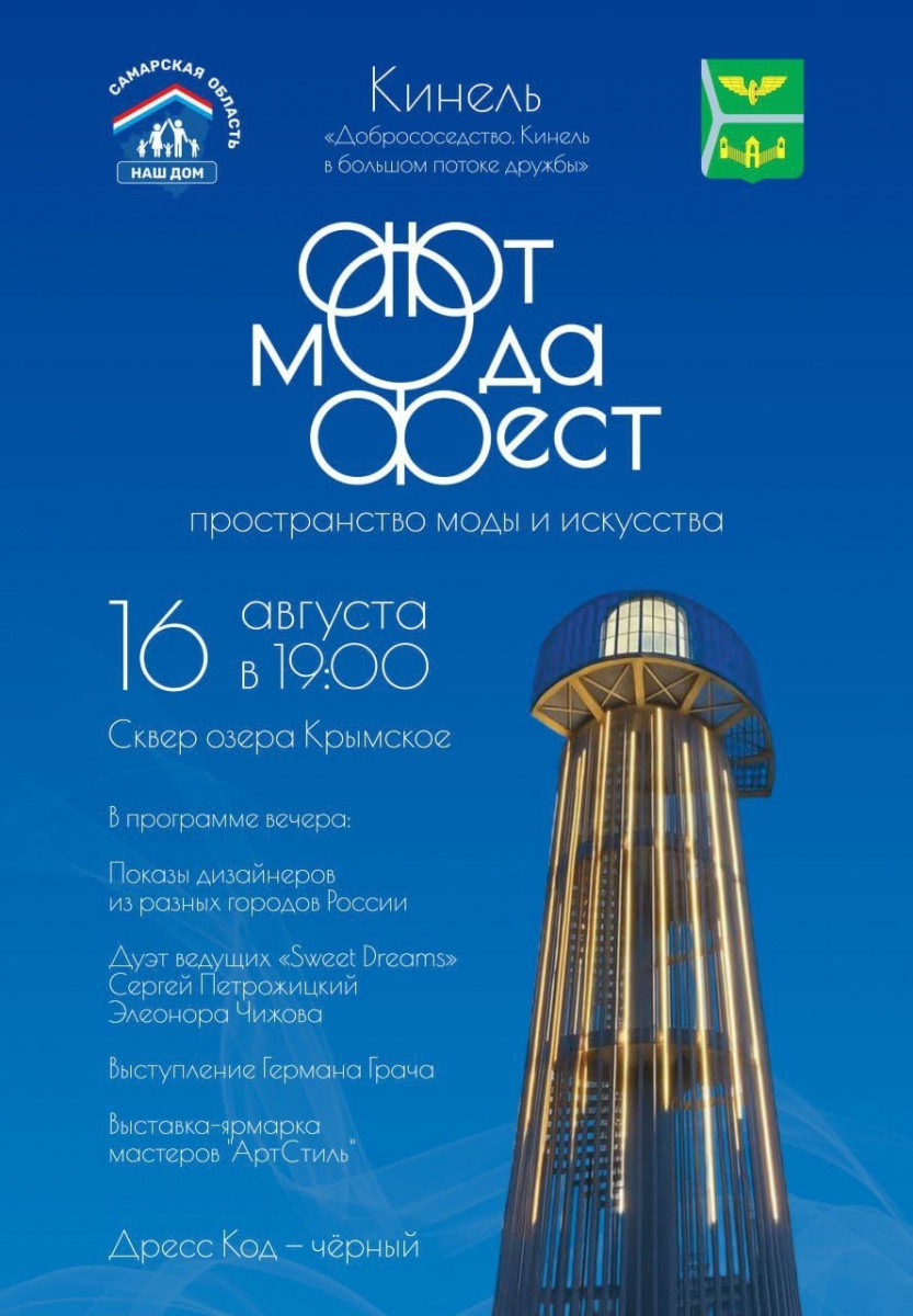 Впервые наш город станет площадкой проведения фестиваля «АртМодаФест». Это еще одно масштабное мероприятие городского фестиваля «Добрососедство. Кинель в большом потоке дружбы», который проводится в рамках регионального проекта «Самарская область – наш дом». В этот вечер жители городского округа Кинель продемонстрируют не только гостеприимство, но и готовность обмениваться опытом, развивать креативные индустрии.