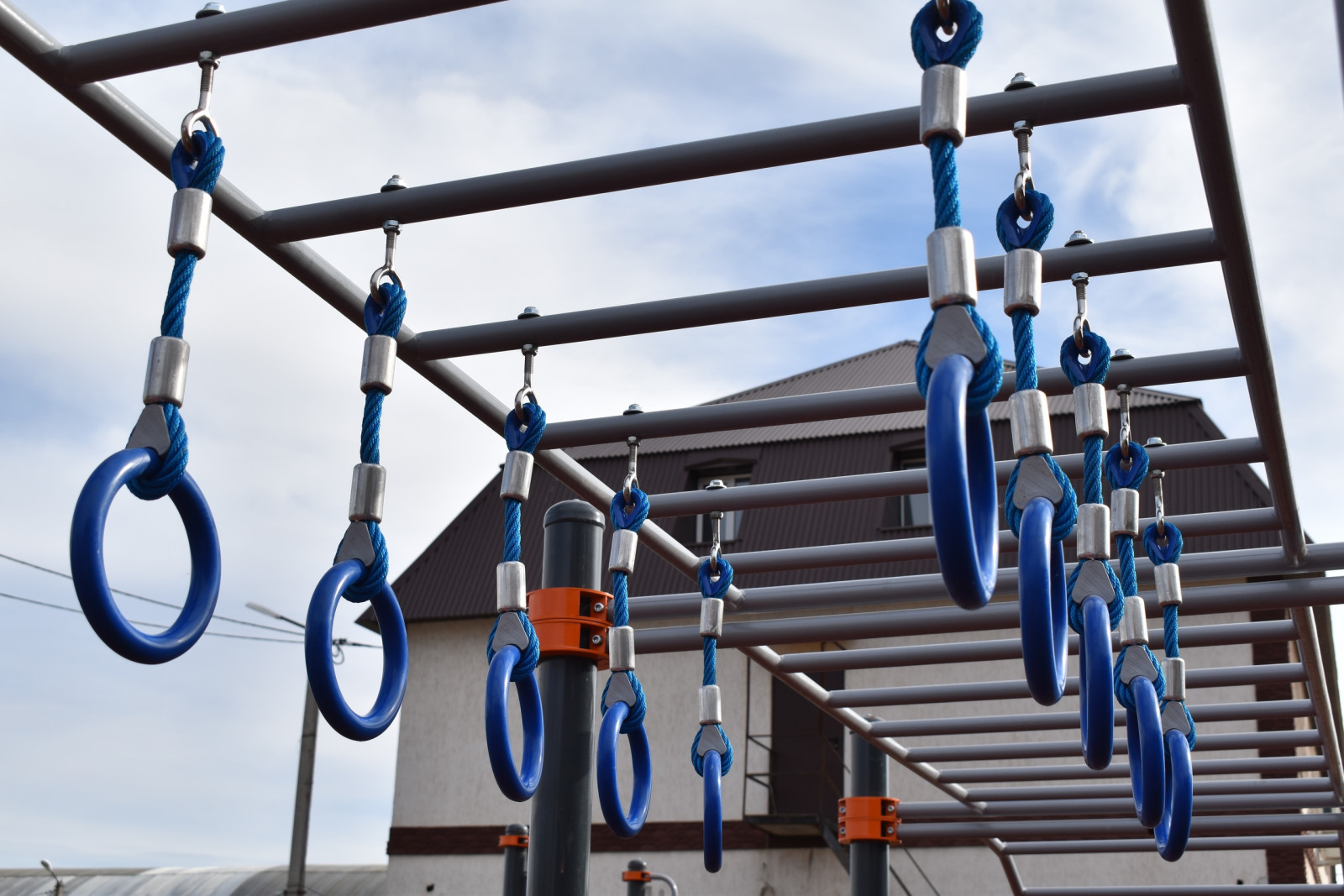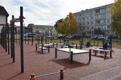 Новая площадка разместилась во дворе многоквартирного дома и вместила в себя комплекс спортивного оборудования, предназначенного для разноплановых тренировок. Силовые тренажеры, разноуровневые турники и перекладины, рукоходы, гимнастические кольца, тумбы для наклонов с положения сидя и стоя, большое кольцо с сеткой для отработки меткости и не только.